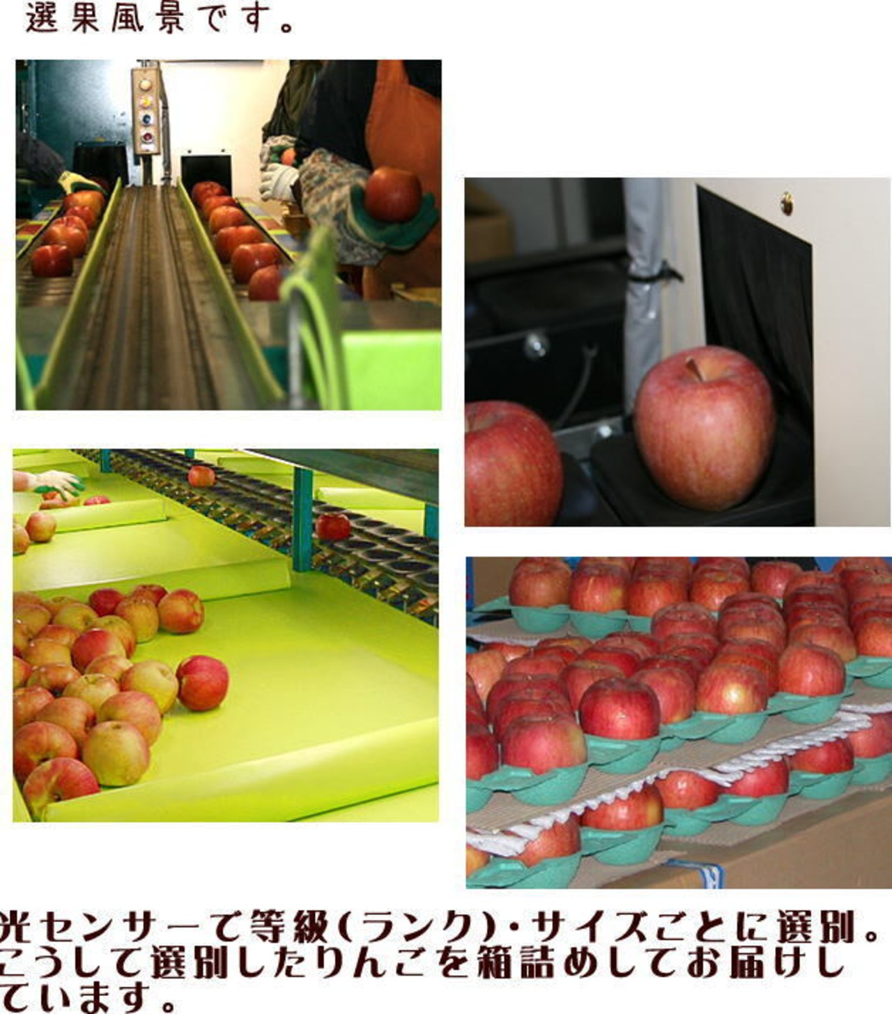 変形果(成長課程で形が変形したもの)・色が薄い他、小キズがあるためAランクに入らないりんごが入ります。