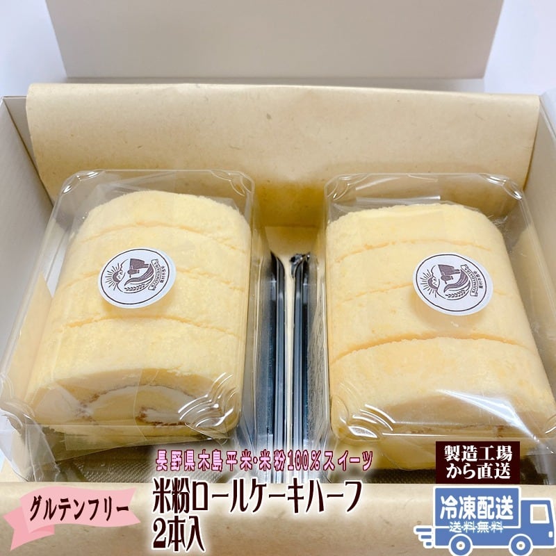 米粉ロールケーキハーフ2本(化粧箱入) グルテンフリー スイーツ ギフト米粉100% お中元 お歳暮